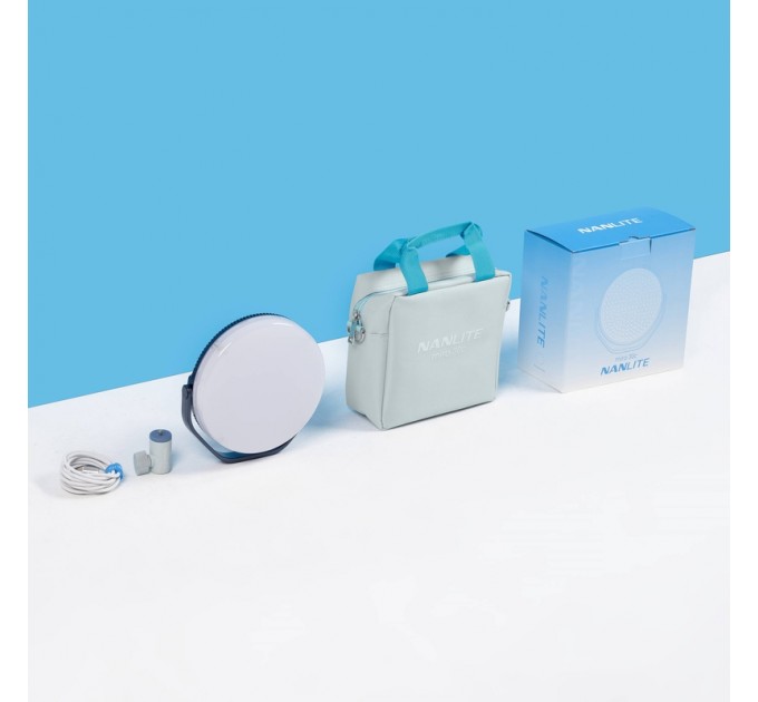 Светодиодная панель Nanlite miro 30c RGB представлена как стильный круглый источник света, обладающий универсальностью в плане цвета, управления и мощности. miro 30c размером около 18 сантиметров и весом 0,33 килограмма — это компактное и удобное в использовании осветительное устройство, способное воспроизводить любые цвета благодаря светодиодной системе Nebula C4. Эта осветительная система объединяет красные, зелёные, синие и белые светодиоды для точной цветопередачи и создания максимально широкого RGBW-спектра. Дополнительным преимуществом выбора miro 30c является круглый форм-фактор, который дополняется магнитным рассеивателем, дающим превосходный результат с мягким светом. Устройство может работать от сети переменного тока, аккумуляторов серии NP-F или блоков питания с разъёмом USB-C. Nanlite также комплектует этот осветительный прибор USB-C кабелем, крепёжным адаптером под стандарт 5/8" с резьбой 1/4"-20 для установки на стойку, а также удобной сумкой для переноски. Данная версия выполнена в элегантном мятно-голубом цвете, который подчёркивает не только качество освещения, но и эстетику подкастов, прямых трансляций и других решений для создания контента.